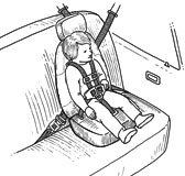 • The shoulder belt should never be placed behind a child's back or under the arm. If this is done, your child could be seriously injured or killed in a crash.