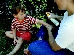 6. When applying insect repellents to children, read all directions first; do not apply over cuts, wounds, or irritated skin; do not apply to eyes, mouth, hands, or directly on the face; and use just enough to cover exposed skin or clothing, but do not use under clothing